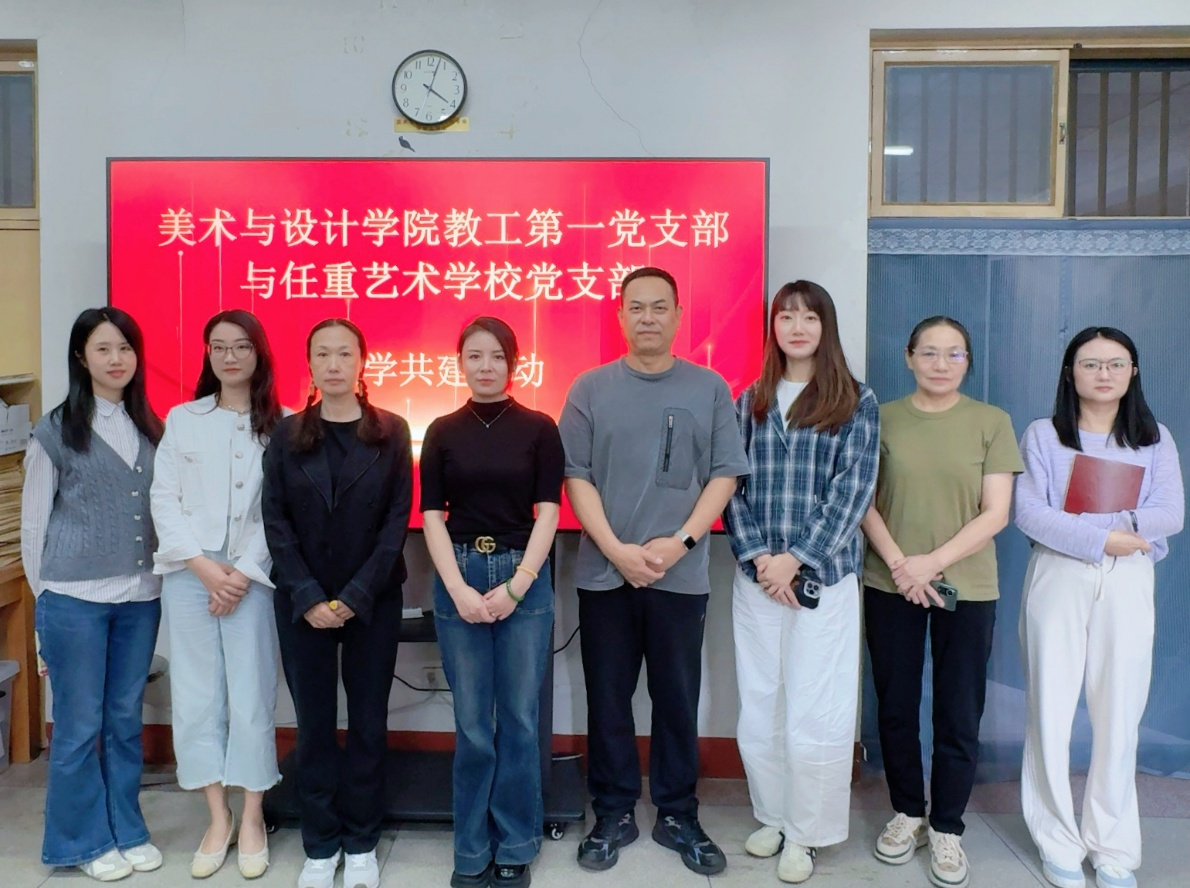 双方围绕“党建引领下的艺术人才培养创新”主题开展专题分享。 我院教工第一党支部书记刘春雨介绍了美术学专业“以美育人、以文化人”的教学理念与课程体系,表示希望通过此次联学共建活动,能够进一步加强与石家庄任重艺术学校的交流与合作,共同探索党建引领下艺术人才培养的新模式和新路径,为社会培养出更多优秀的艺术人才。任重艺术学校党支部书记平丽结合行业案例,解读当前艺术设计、文化传播等领域的岗位需求与发展趋势,分享了任重艺术学校在人才培养过程中的实践经验,希望通过与我院教工第一党支部的联学共建,加强双方在人才培养、课程建设等方面的交流合作,共同为学生搭建更广阔的发展平台,让学生能够更好地适应市场需求,在未来的职业生涯中取得优异的成绩。双方围绕行业技能要求、职业素养标准、实践能力培养等方面展开了深入交流。
