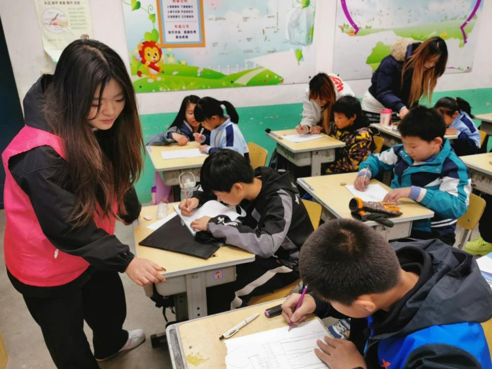 刘春雨老师,以“知识复盘+融会贯通”为思路,带领小学生回顾已学美术知识,通过案例拆解、趣味问答等方式,引导学生将绘画中的透视、构图技巧等知识点串联运用,帮助他们弥补学习“知识碎片化”的不足,夯实美术基础。在“我的家乡”主题绘画创作环节,美术学专业的学生们结合测鱼镇的自然风光与人文特色,悉心指导学生用画笔描绘家乡的青山绿水、老街小巷。在专业的辅导下,孩子们将对家乡的热爱倾注于自己的作品之中,积极创作出充满童真与真情的画作。这不仅提升了他们的绘画技能,更让他们在创作过程中深化了家国情怀,增强了对家乡的认同感。此外,美术学专业同学们分享了自己在学习道路上的成长故事与心得体会,鼓励益海小学的孩子们要勇于追求梦想,考取理想的大学,用知识点亮未来的人生之路,这些真挚的分享,让孩子们深受鼓舞。