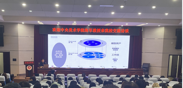 近日,美术与设计学院特邀中央美术学院设计学院博士生导师、中央美术学院美术馆副馆长、国家设计管理研究中心主任海军教授来我校举办了一场题为《智能-时代的设计》的前沿学术讲座。美术与设计学院班子、师生代表参加。