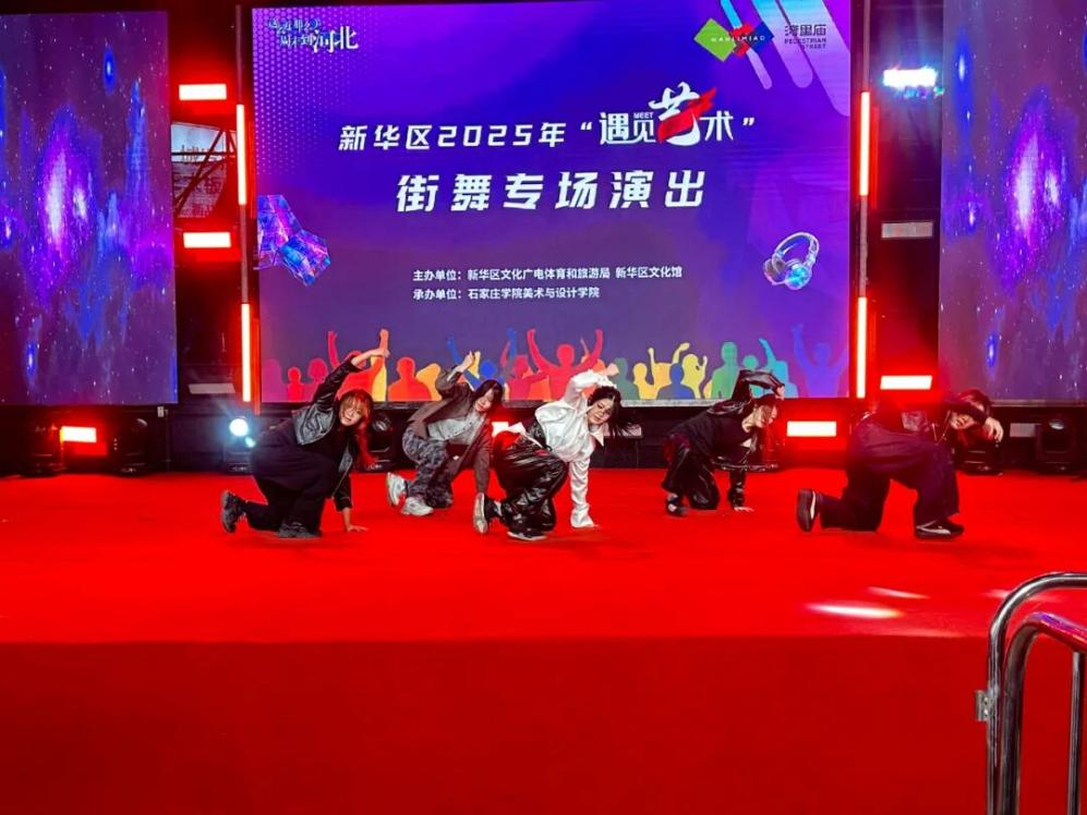 美术与设计学院积极同学生处、团委等学生管理部门加强协作,落实“学生综合素养提升”工程有关要求,注重学生综合素质和艺术修养的培养提高,主动为同学们搭建展示自我的舞台,鼓励支持大家以社团为载体,组织开展各类文体活动,充实“第二课堂”、丰富校园文化。学院的FXD大学生街舞社团先后荣获石家庄高校街舞联赛CN Youngster齐舞冠军、2025全国校园音乐大赛河北赛区亚军。此次应邀参加我市新华区“遇见艺术”街舞专场演出,正是推动学生社团发展的又一次成功实践,同时,让更多市民群众看到了我校学子的青春风采和艺术才华,进一步提升了学校的社会美誉度。(供稿:团学 审核:刘金敏)