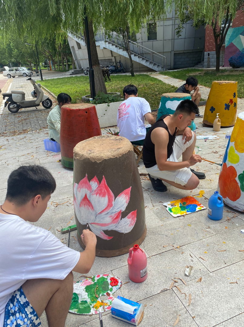 我院高度重视此次赛事,组建专项创作团队参赛。李林、王金博两位指导教师,组建学生创作团队深入乡村一线,以学校帮扶村安里村为创作落点,在驻村工作队的支持下,充分调研当地建筑风格、文化习俗与风土人情,将艺术创意与村民生活充分融合。作品《乡居花语 — 你好,安里!》以 “乡居环境美化与村落文化传承” 为核心,选用适合户外展陈的耐久性材料-----闲置瓮,依托乡村既有空间与废旧生活用品元素进行艺术创作,既避免了对现有生态环境的破坏,又通过景观设计激活了乡村公共艺术空间活力,生动诠释了 “美育赋能乡村” 的赛事理念,成为展现新时代乡村风貌的生动艺术载体。(供稿:竞赛教研室 审核:刘金敏)