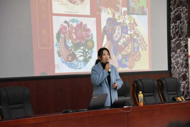 讲座中,李烨老师以“我国优秀传统艺术生命力”为切入点,系统地梳理了中国民间艺术的发展脉络。他结合翔实的图文资料与生动案例,先后对剪纸、年画、皮影等具有代表性的民间艺术形式展开深入解读,细致地讲解了各类艺术形式的历史渊源、地域特色以及工艺技法,着重剖析了作品背后所蕴含的民俗文化内涵与劳动人民的审美智慧。通过动态影像展示,使学生能够直观地感受民间艺术的地域多样性。