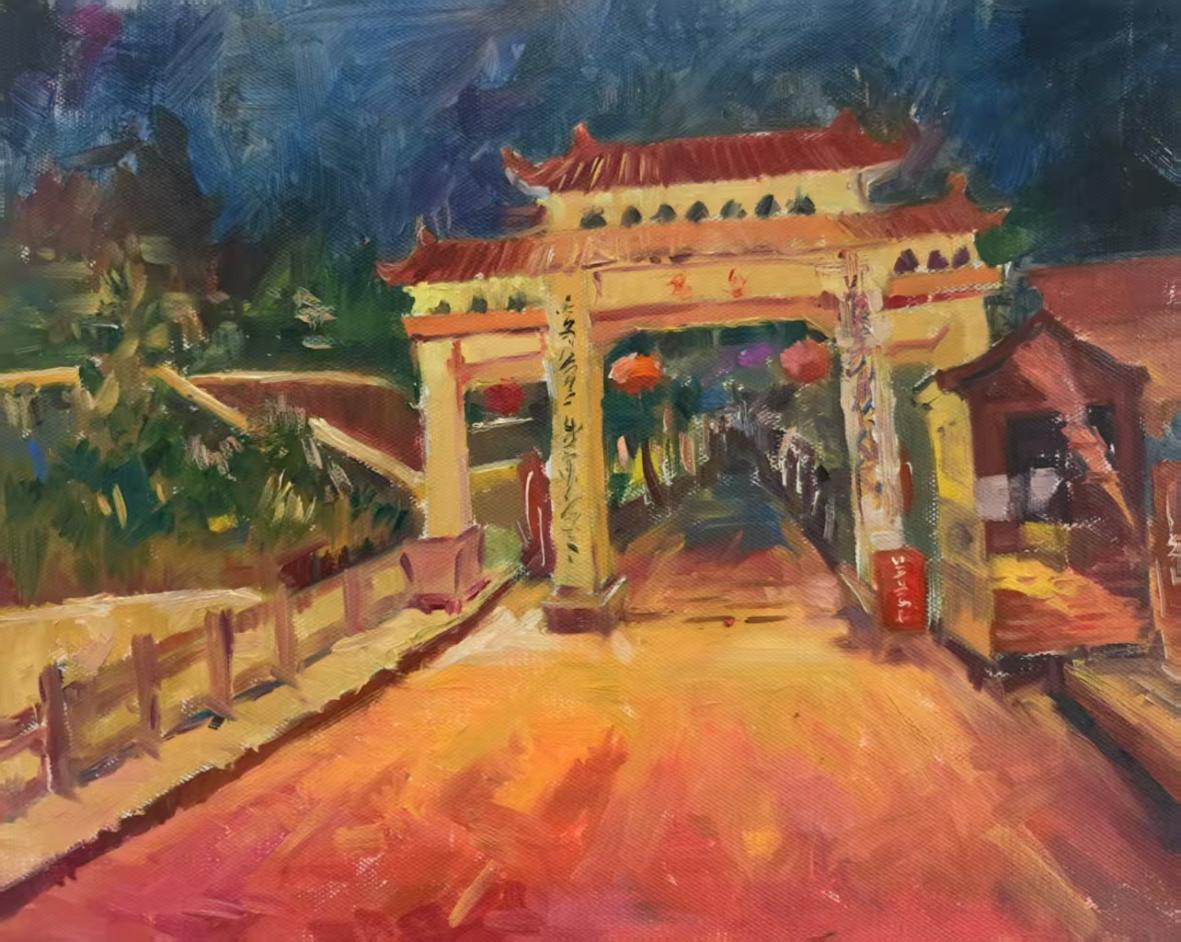 《户外写生(油画)》是美术学专业的核心实践课程,为期四周。该课程以户外写生为载体,兼顾专业技能提升与思政素养培育。通过理论讲授、技法示范、实地创作以及红色传承与支教相结合的教学模式,系统传授室外色彩原理、油画工具技法、空间构图等专业知识。