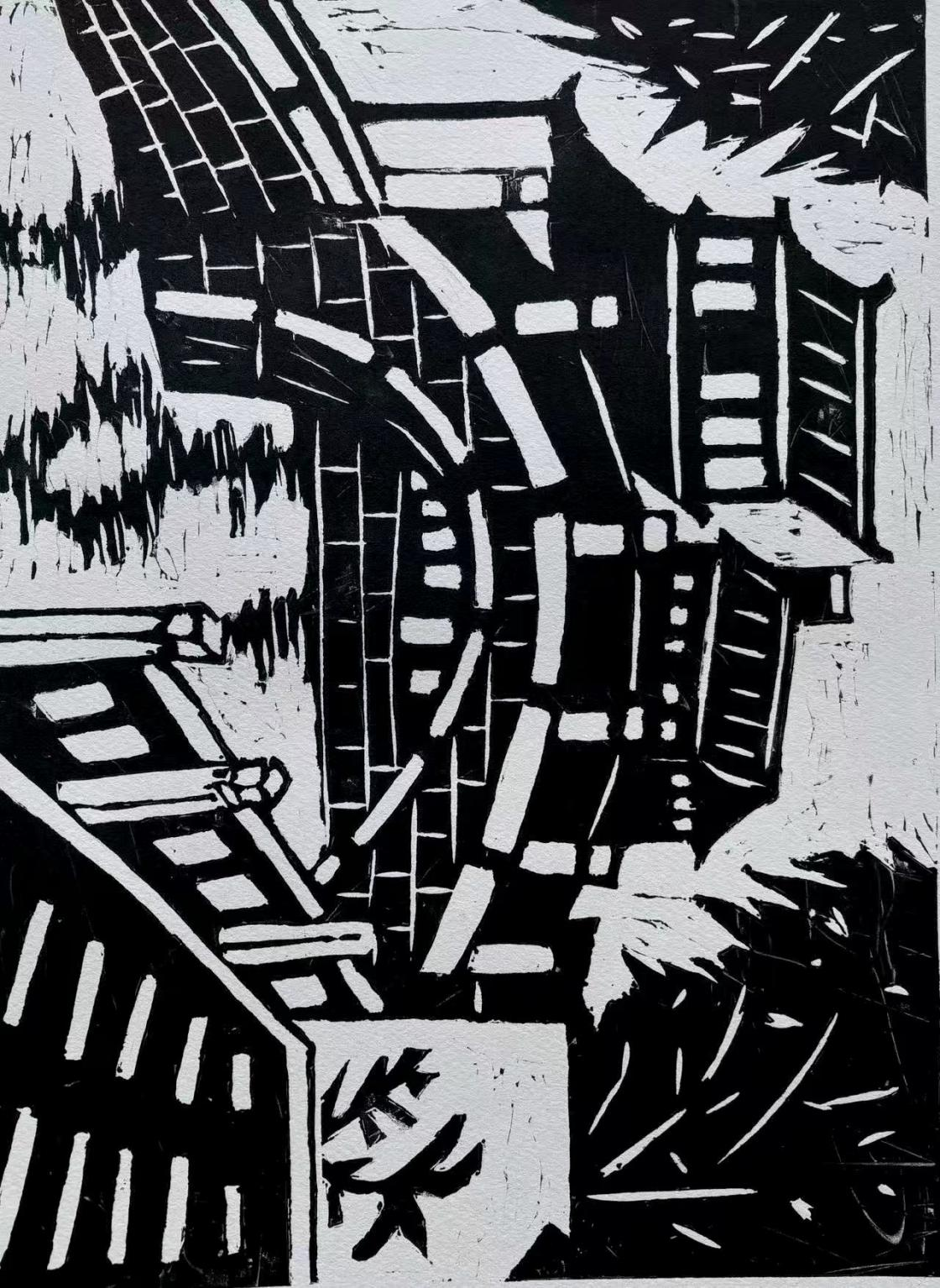 本次展示作品虽尚显稚嫩与不足,却真实映照出同学们在艺术探索路上的勇敢尝试与无限可能。有的作品线条虽略显生涩,却充满了质朴的力量;有的构图虽不够成熟,却展现出大胆的想象。这些“不完美”恰恰是他们艺术成长最鲜活的注脚,也让我们看到了传统版画艺术在年轻一代身上焕发出的新的生命力。