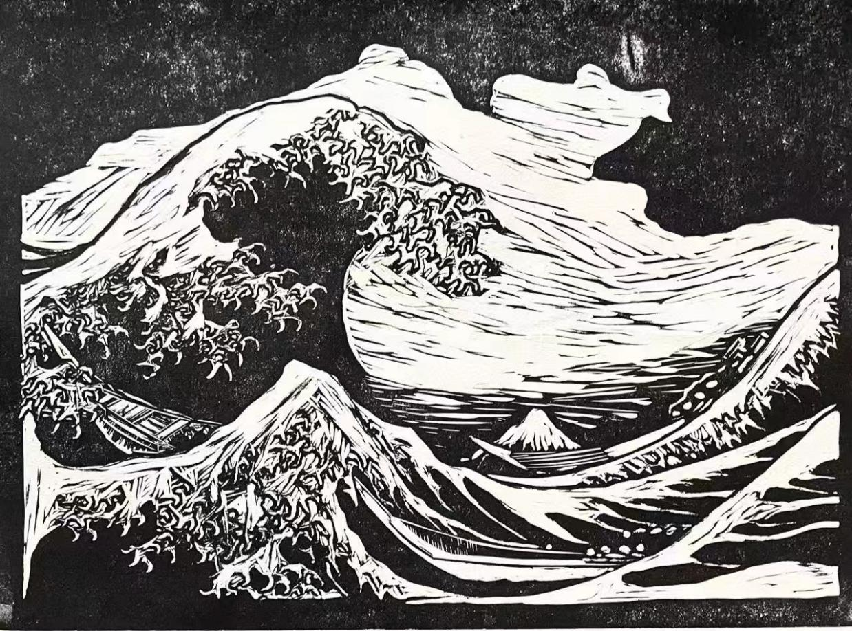 版画,是以刀为笔的坚定,是黑白线条与情感的深情对话,是力与美的巧妙融合,更是创作中的热情与投入。在刻刀与木板的碰撞中,同学们亲身感受到了中国传统木刻艺术的深厚底蕴。