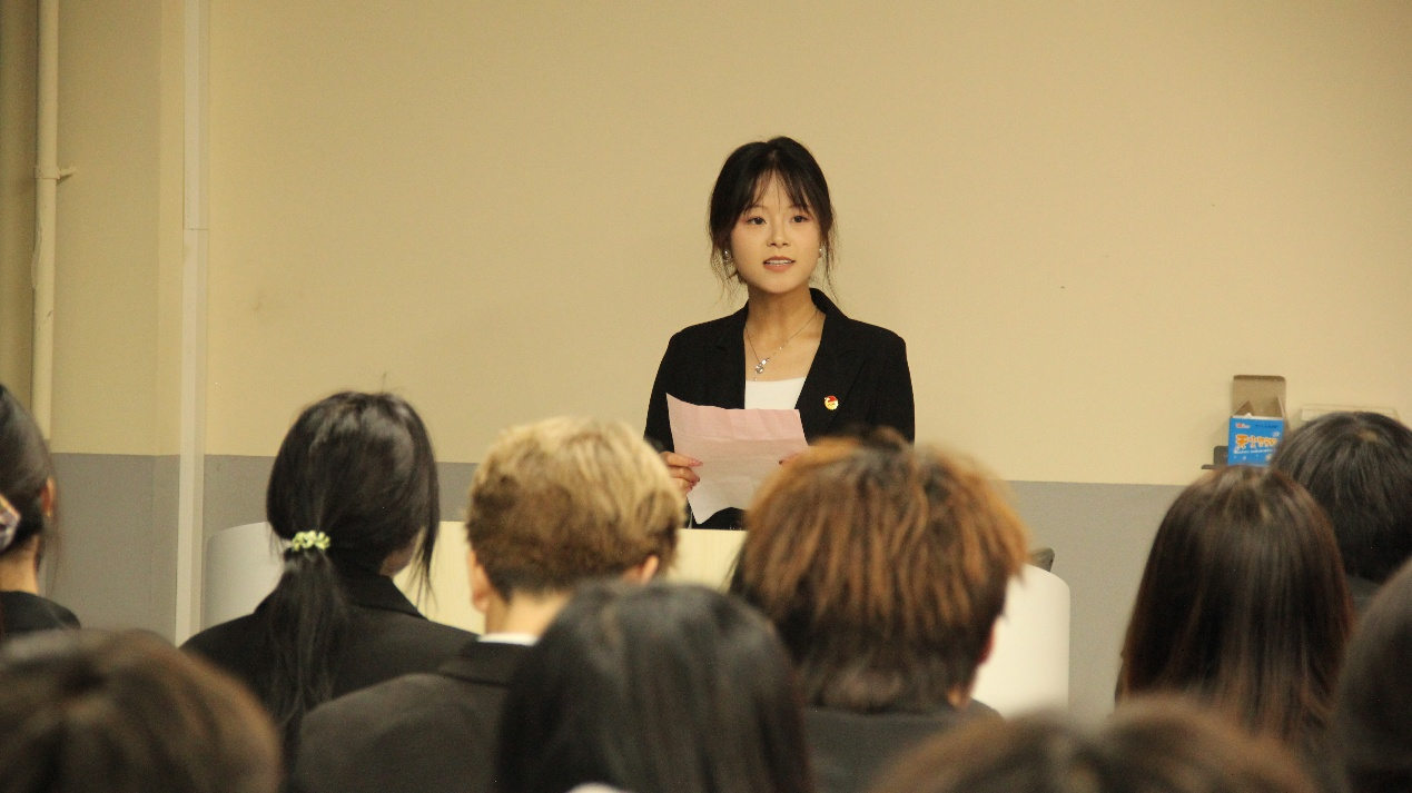随后,上届学生会代表上台发言,详实复盘过往履职的点点滴滴,发言尾声,他们动情致谢,更饱含对新一届学生会的期望。