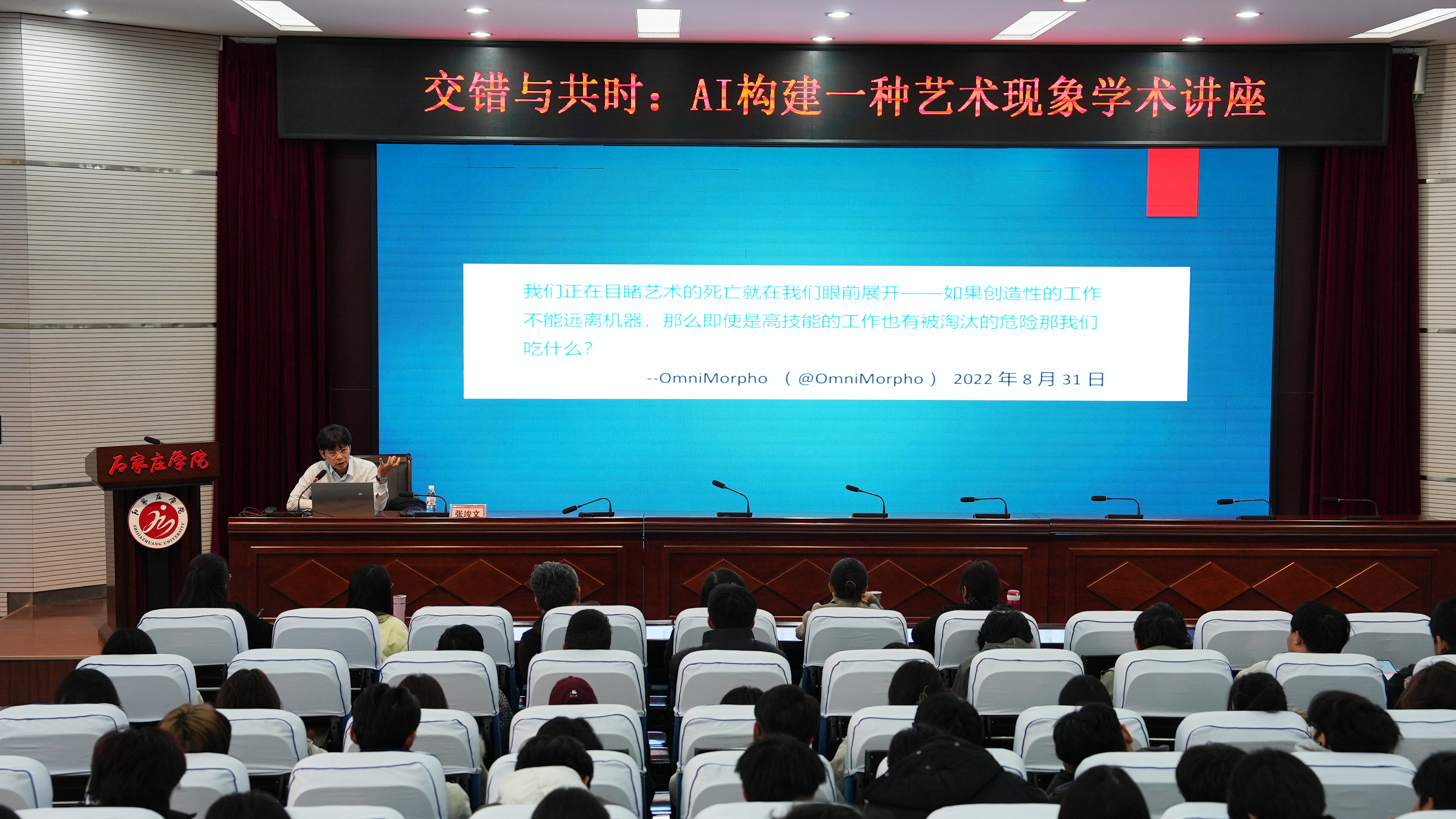 11月3日,马来西亚南方大学国际教育中心院长张竣文教授,开展了一场主题为“交错与共时:AI建构一种艺术现象”的讲座。校国际交流中心、美术与设计学院师生代表200余人到场聆听。